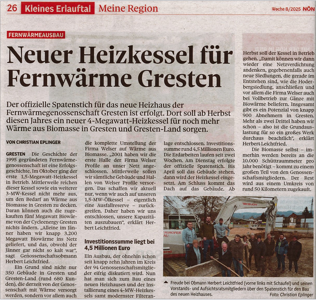 Neuer Abnehmer - NNÖMS Hainfeld Die Naturwärme Kirchtal GmbH & CoKG konnte mit der NNÖMS einen neuen Wärmeabnehmer gewinnen, und begrüßt diesen herzlich.